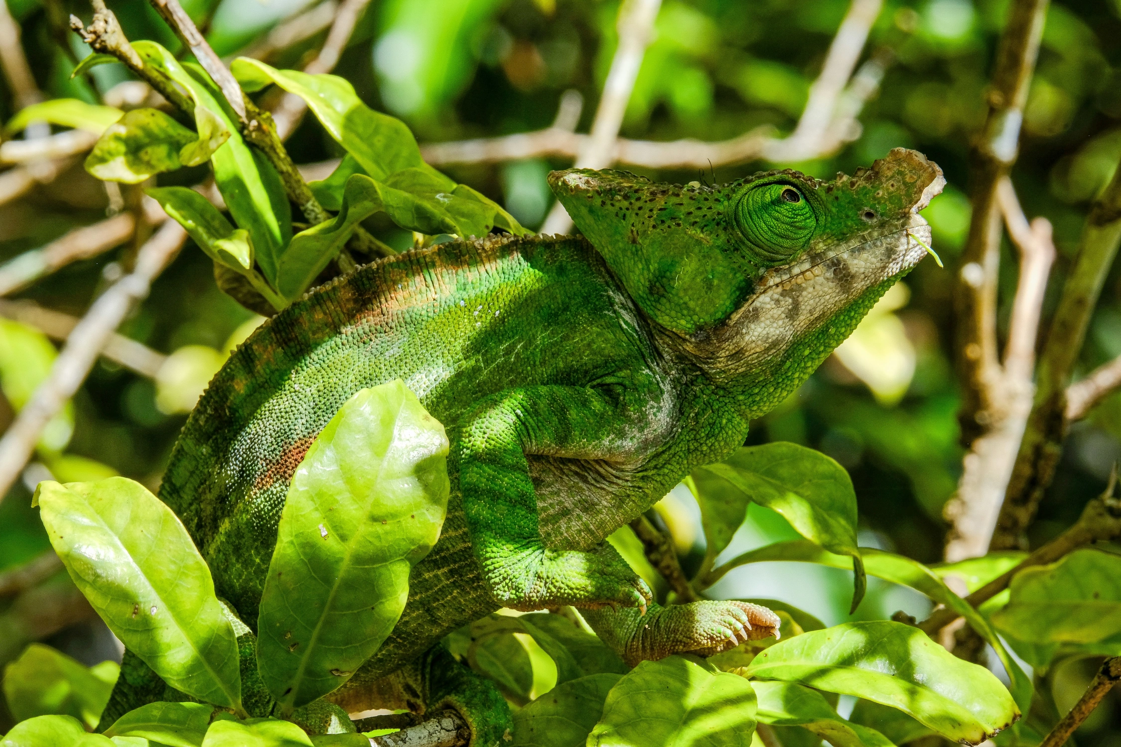 Madagascar is renowned for its rich biodiversity, with chameleons being one of the most captivating groups of reptiles found in this unique ecosystem. The island is home to nearly two-thirds of the world’s chameleon species, many of which are endemic, showcasing a remarkable variety of colors, sizes, and behaviors. These fascinating creatures are adapted to thrive in various habitats, from lush rainforests to arid deserts, reflecting the island’s ecological diversity. In Madagascar, there are three families of chameleons, each comprising several species: Brookesia, Calumma, and Furcifer.