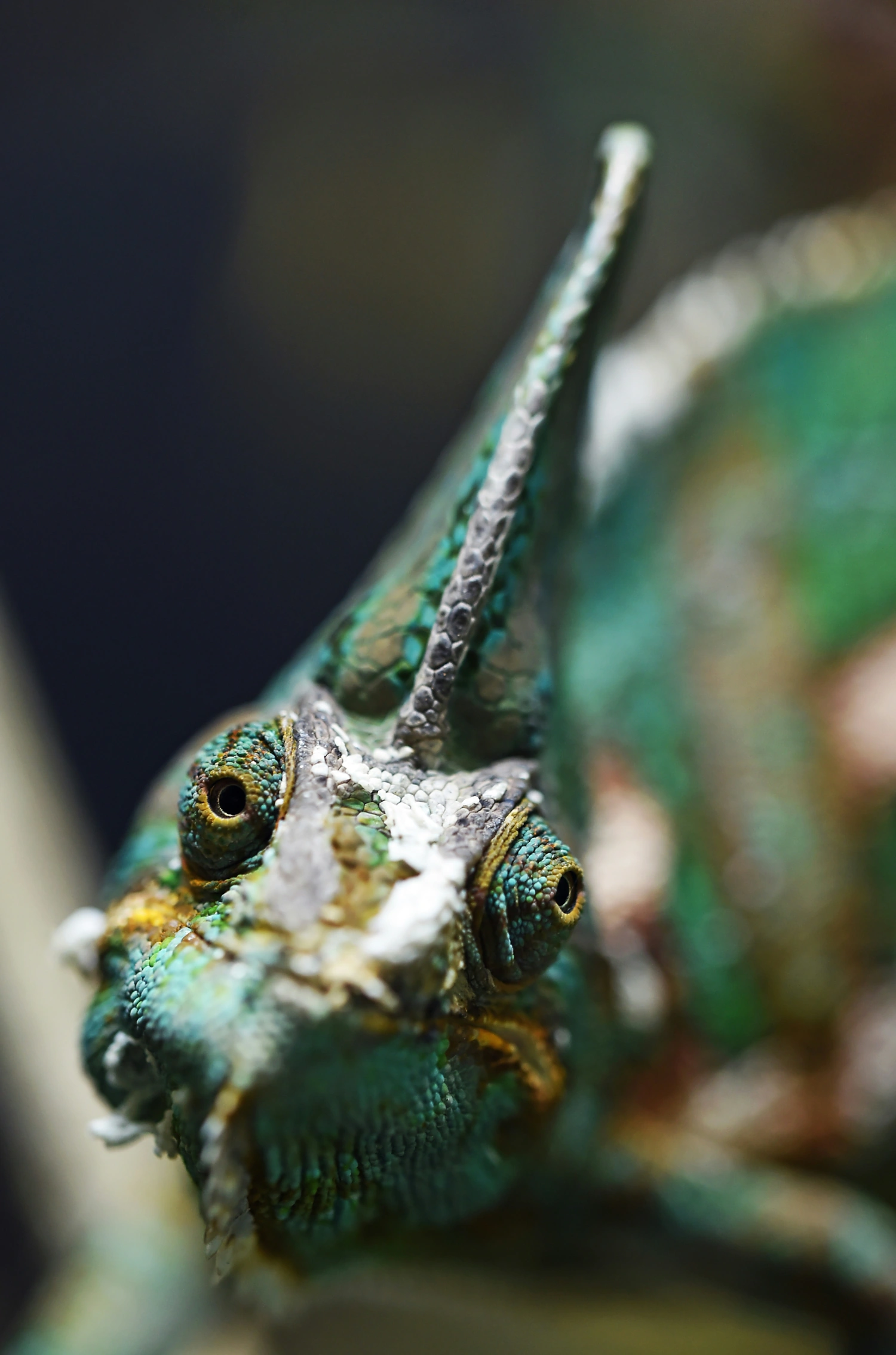 Chameleons are particularly interesting due to their distinctive color-changing ability, which they use for emotion communication between them, camouflage, and temperature regulation. While many people associate chameleons primarily with their color transformation, it is important to note that these reptiles possess other unique features. Their incredible visual acuity with a field of vision of 340 degrees which allows them to see in multiple directions simultaneously and spot their prey more easily, along with their prehensile tails and zygodactylous feet, are adaptations that enable them to navigate their environments efficiently while hunting for insects and avoiding predators.