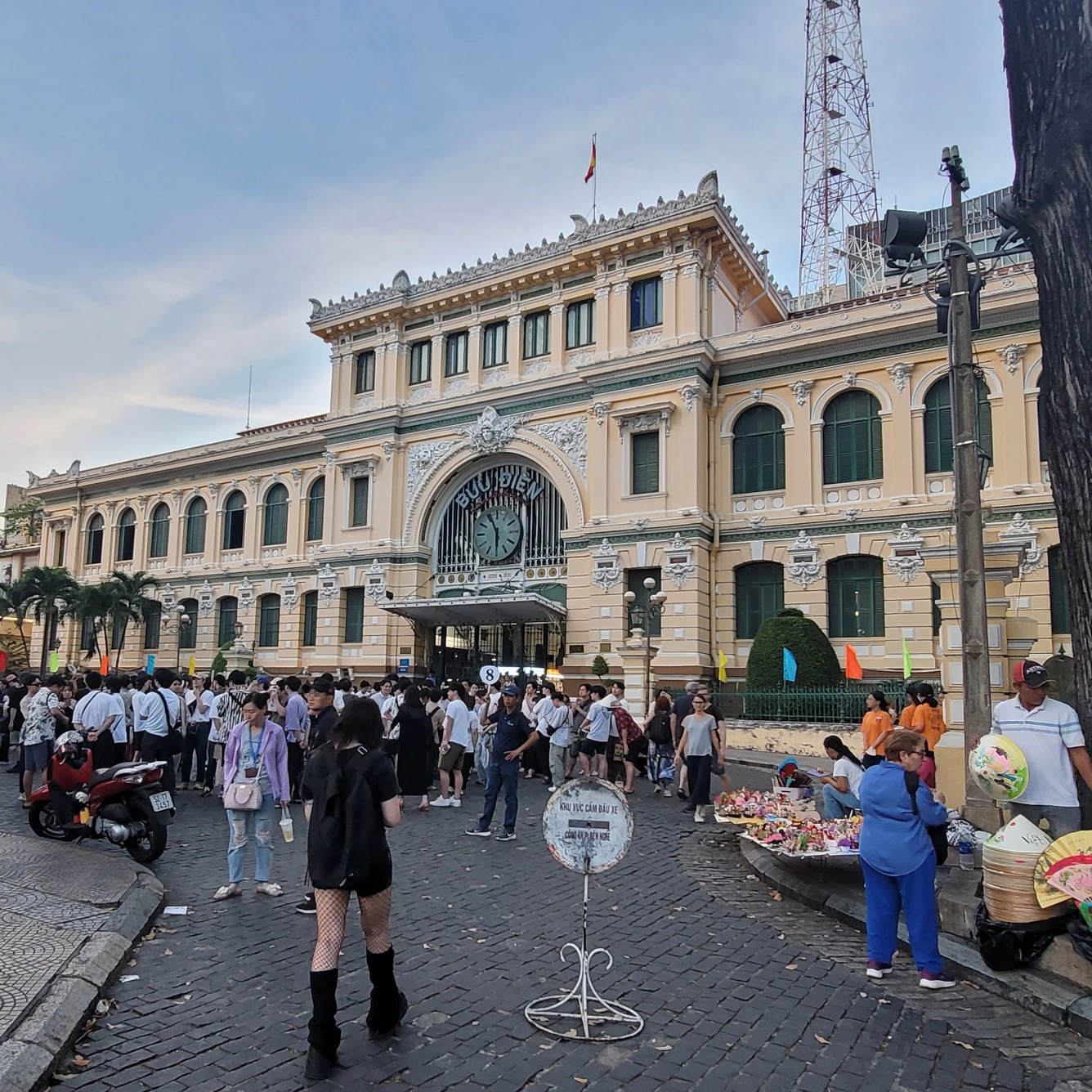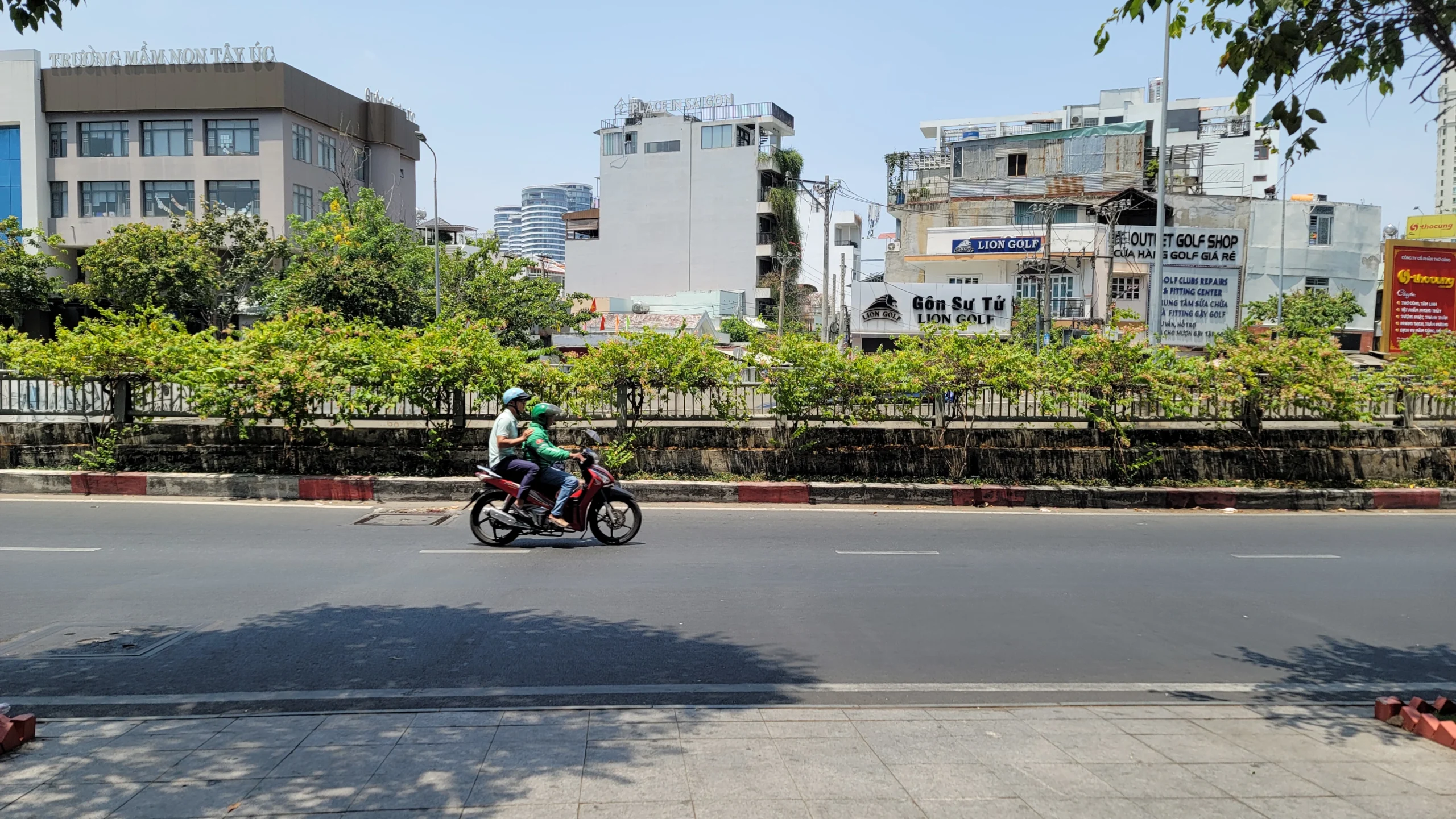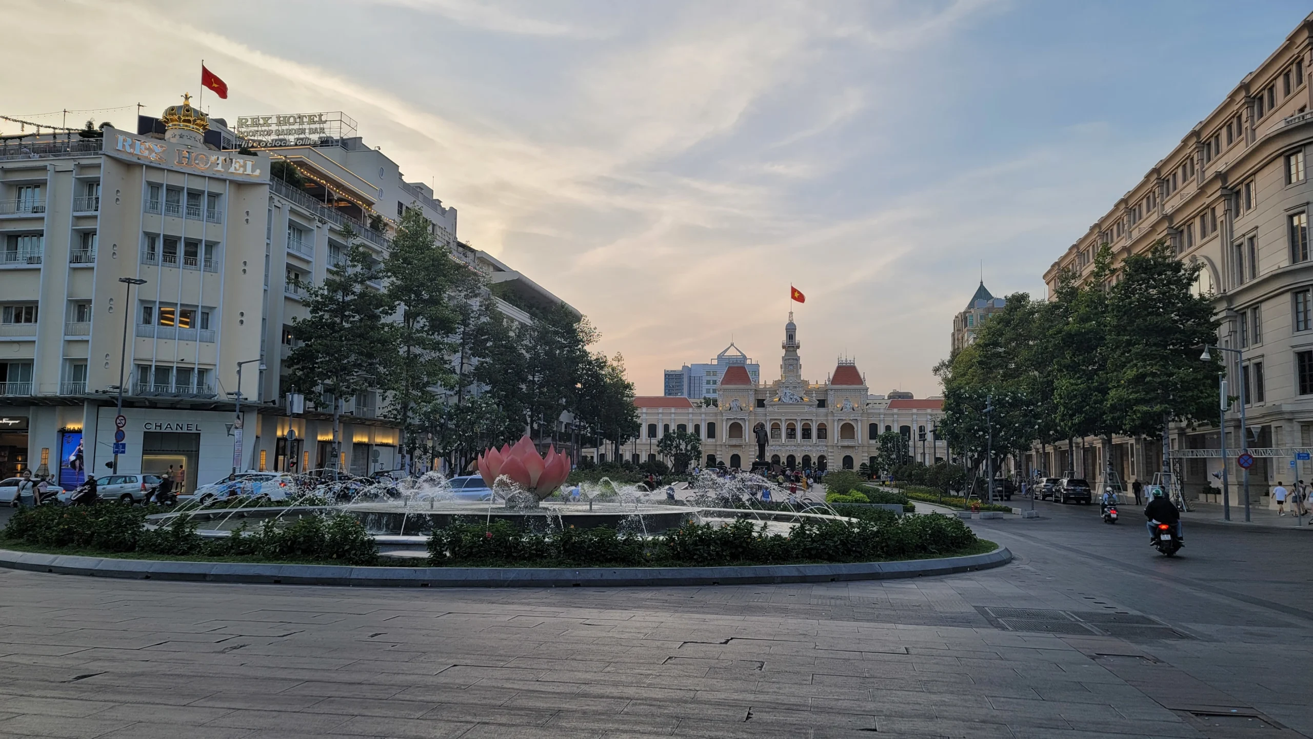 Voici quelques bâtiments architecturaux intéressants à Hô Chi Minh-Ville, ainsi que des motos avec leurs gilets verts Grab, qui sont à la fois des livreurs et des taxis grâce à l’application Grab, qui est l’Uber de l’Asie.