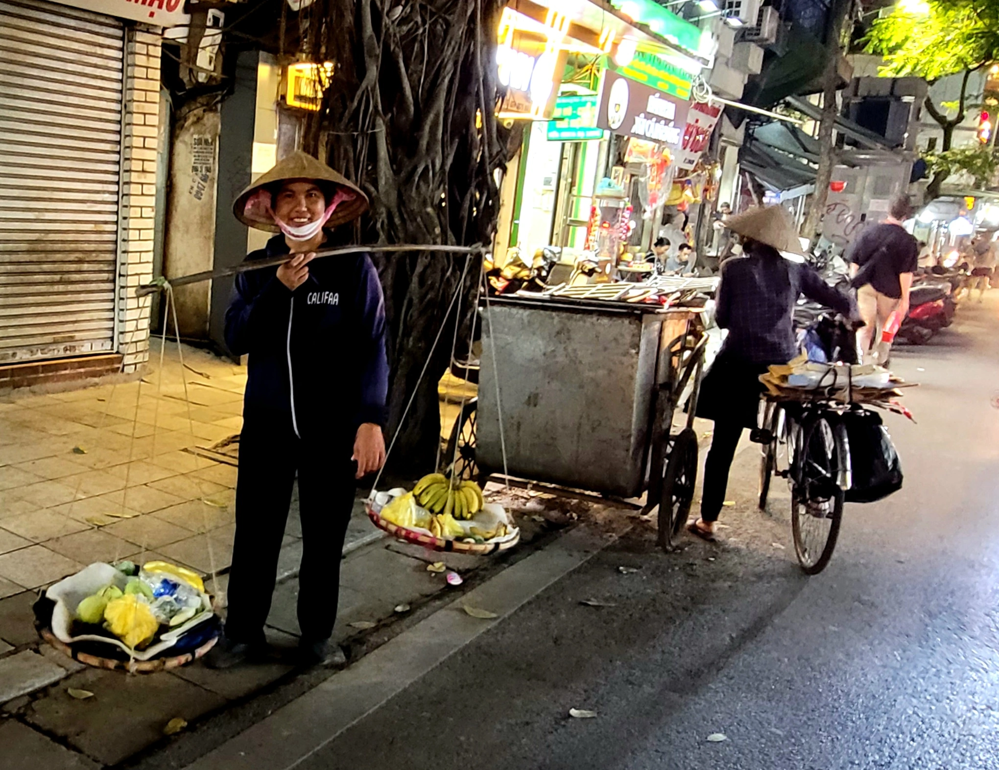 Dans le vieux quartier de Hanoï, la population est très dense et tout est très compact. On peut sentir la pollution de l’air avec tous les scooters qui circulent dans toutes les directions sans aucune structure, mélangés à quelques voitures et à l’icône de la culture de Hanoï que représente les vendeuses ambulantes vietnamiennes portant des paniers jumeaux suspendus à des balanciers.